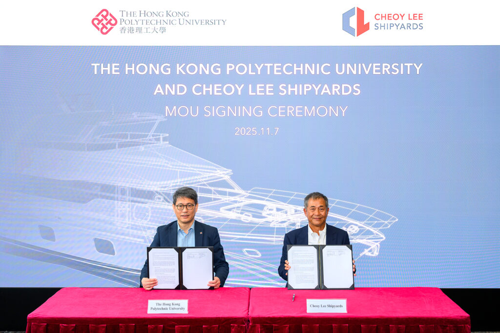 Cheoy Lee Shipyards and The Hong Kong Polytechnic University (PolyU) have signed a Memorandum of Understanding (MoU) to jointly promote research and innovation in artificial intelligence robotics, alternative-powered vessels and green materials. The collaboration aims to drive breakthroughs in electrical vessels, sustainable manufacturing technologies and renewable energy.